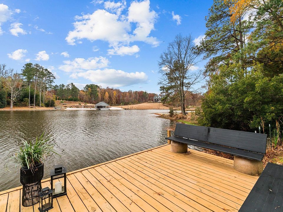 Charming waterfront home with an Amazing lake view! This clean and move in ready home features fresh paint and a brand new roof. Over 1/2 acre lot with a private dock. Stylish updated kitchen, living room features a stone surround fireplace. The oversized primary suite features a balcony with serene views and ample closet space. Large bonus room with balcony and a fireplace. The finished walk out basement would make a great game room, home office or fitness area. Enjoy entertaining on the wraparound deck or relax under the stars around the firepit! Minutes to shopping, dining, parks, golf and highways.