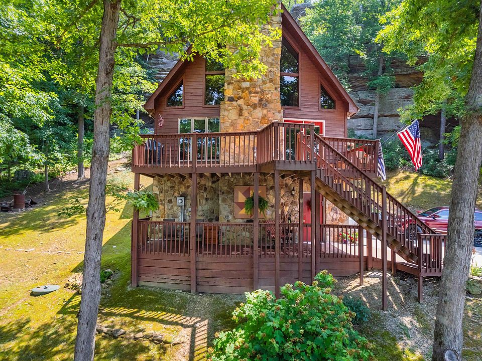 This stunning lake home offers endless lake views and plenty of room for friends and family!! You are welcomed by a soaring great room ceiling with two-story views of beautiful Wood Creek Lake. The open concept great room, kitchen and dining area offer spacious living, and the loft space above completes the cabin feel of the home. The private owners suite is graced with a large screened-in porch and private deck. The attic space is floored, heated and cooled and plumbed for additional living space and would be an awesome bunk room, craft room or office. As an added bonus it features a mud-room and large laundry room on the lower level. Want outdoor space, the two large front decks are perfect for entertaining, enjoying your morning coffee or sharing an afternoon glass of iced tea with a friend. Wildlife abounds and Wood Creek Lake is known far and wide for it's pristine waters, canoeing, kayaking, fishing and array of outdoor activities. Lake access is no problem, the home includes water access and a private dock. This one is the total package!!