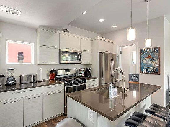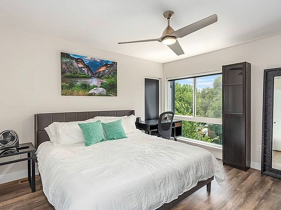 One of the only units in west line village that has the “master bedroom” upgrade (this same floor plan normally has a small 2 bed with a jack and Jill shared bathroom) the upgrade allowed for LVT flooring upstairs and downstairs. Double vanity with all glass shower. Large windows, and a walk-in closet with full size washer/dryer. Quartz countertops in all bathrooms and kitchen. Stainless steel appliances.