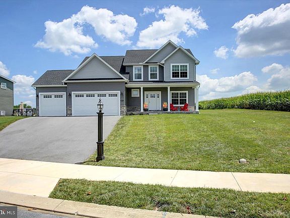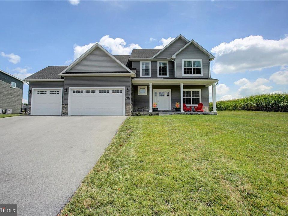 Welcome to 1014 Divinity Dr, a stunning 2022-built home nestled in the highly sought-after Heritage Estates neighborhood in Greencastle. This meticulously maintained property sits on a beautiful end lot, surrounded by serene cornfields, offering breathtaking views. From the moment you step onto the covered front porch, you’ll feel the charm of this modern home, designed with top-end finishes throughout. Inside, the spacious foyer entry leads to an open-concept main floor featuring a formal dining room, a gourmet kitchen with high-end finishes and a large island, a bright nook, and a welcoming living room—perfect for both everyday living and entertaining. Upstairs, the primary suite is a true sanctuary, complete with tray ceilings, a built in closet system, a luxurious en-suite bathroom with a jetted tub, walk-in shower, and double vanities. The second floor also includes three additional well-sized bedrooms, a full bathroom and a laundry room. The finished basement offers even more living space, including a bedroom, a full bathroom, a cozy living room, and an extra storage room. Outside, the Trex deck at the rear of the home provides the perfect spot for outdoor relaxation, overlooking the picturesque cornfields. With 5 spacious bedrooms, 4 bathrooms, and a 3-car garage, this home offers everything you need for modern living in a tranquil setting. Don’t miss your chance to call this beauty home—schedule a private tour today!