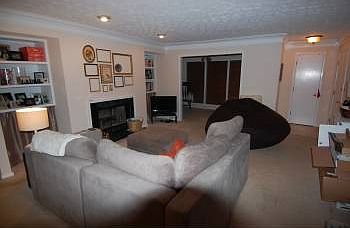 Fantastic space for the money, top floor unit. Large family room with built-ins, fireplace with gas starter. Separate dining room and separate sunroom area great for office or guest room. Kitchen with white cabinets, all appliances remain including washer and dryer. Large master bedroom with crown molding and walk-in closet. Master opens to great deck. Quiet community close to all major highways. New Carpet! FHA approved.