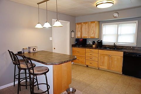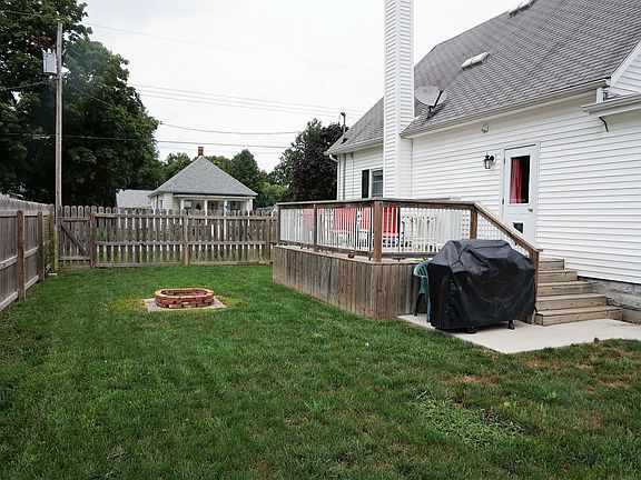 3 car detached garage with one bay heated/cooled. Perfect for a man cave. One bedroom on main level, two bedrooms upstairs. Hardwood flooring in LR/DR and main floor bedroom. Updated kitchen has plenty of cabinetry, peninsula with breakfast bar, built-in microwave, dishwasher, oven and refrigerator. Approx 3 yr old, 12x14.5 deck, just off kitchen, inside a fenced side yard. Water heater 2015. Laundry on main floor.