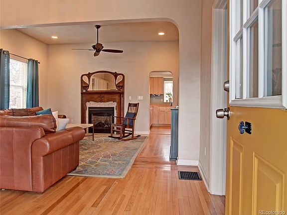 his well maintained one level living property has 4 beds, 3 baths, & over 2,000 sq ft of living space. Lovingly restored with updated kitchen, baths, floors, & a very functional floor plan. This conveniently located home has a covered front porch & is situated on a corner lot with alley access. When you walk in you are welcomed with an over-sized living room with custom built-ins, beautiful refinished hardwood floors, high ceilings, modern lighting, & gas fireplace with an antique mantel. Charming room off the living room is currently being used for a kids play room, would also make a bright office space with tons of natural light from the row of windows & glass french doors. Updated powder bath off the living room. The kitchen has been completely remolded with new cabinets, stainless steel appliances, counter-tops, sink, hardware, lighting, gas range with overhead microwave, wood floors, exposed brick wall, window niche for herbs, & plenty of cabinet storage. Dining room opens up to the kitchen & has tile flooring, vaulted ceilings, & leads out to the byard with french doors. The master bedroom has an adjoining master bathroom, walk-in closet, wood floors, & a window seat. Master bath has a tub/shower combo an updated vanity, lighting tile surround, tile flooring, fixtures, & shelving. 3 additional main level bedrooms with refinished wood floors & plenty of closet space. An additional full bathroom that has been updated with subway tile & custom shower niches, pedestal sink, mirror, fixtures, & flooring. The backyard is fully fenced & landscaping with a professionally designed paver patio & custom built shed with barn doors. There is plenty of off-street parking & room for RV parking. Enjoy being close to parks, trails, neighborhood coffee shops, downtown, & schools, hospitals, access to I-25, restaurants, & shopping.