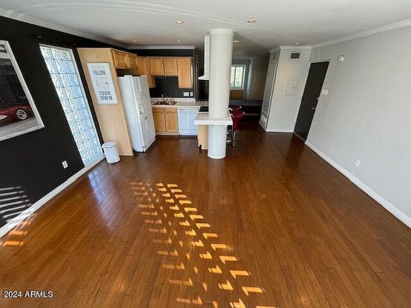 **LOOK AT THAT NEW PRICE! Discover the epitome of urban living in this metropolitan loft, ideally located in the mid-town arts district of Phoenix. This 1 bed, 1 bath end unit condo, situated on the 2nd floor of the gated Osborn Terrace community, offers unparalleled peace and privacy with its robust cement fire walls and floors, ensuring you never hear your neighbors. As you step inside this loft-style condo, be captivated by the exquisite hardwood floors that lay the foundation for a space brimming with character. The unit is adorned with elegant crown molding both at the floor and ceiling, adding a touch of sophistication. Light pours in through unique glass block windows, creating a bright and inviting atmosphere, further enhanced by the modern recessed lighting. The bathroom is a highlight, featuring a classic claw tub and a pedestal sink that adds a touch of old-world charm. The condo's thoughtful layout includes a custom-built dresser, maximizing space and style. Your security and convenience are paramount, with a condo door equipped with an electronic keypad and assigned carport parking that comes with additional built-in storage, complete with a lock and key. The community's laundry facilities were recently updated in February 2024 featuring new washers and dryers! There's added convenience as no coins are needed - residents have the option to pay via mobile app or reloadable laundry card! Take pleasure in the serene pool view, a perfect backdrop for relaxation. This unit's prime location means you're just a short walk away from local favorites like Starbucks, Gadzooks, Taco Guild, and more. Enjoy quick commutes to AJ's Fine Foods, Wildflower Bread Company, Fry's, and Walgreens for all your daily needs. Living in this community means enjoying the ease of having all utilities covered by the HOA, except for cable and phone. Experience the perfect blend of comfort, style, and convenience in this one-of-a-kind loft. Don't miss the opportunity to call this vibrant and secure community your home!
