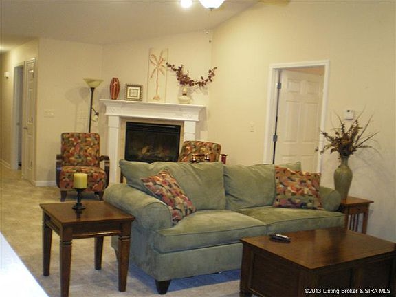 LOCATION! Hidden gem in private Sellersburg patio home community with area lake & fountain. Low annual maintenance fees of $300 year. Completely open floor plan boasts spacious living area with fireplace, formal dining and raised eat-in bar area overlooking fully-equipped kitchen with smooth-top range, microwave, dishwasher, disposal, refrigerator, pantry & an abundance of beautiful cabinetry/counter space. Master suite has crown molding, fabulous master bath with jetted tub, separate shower & double bowl vanity, large linen and huge walk in closet. Guest bedroom has walk in closet. Good sized laundry room just off the 2 car garage. Tiled entry, kitchen, dining, laundry and baths. You will love the enclosed/screened in patio - great for entertaining - with privacy fenced yard. Just move in and enjoy easy, comfortable living at its best. Fantastic neighborhood! All meas. & sf approx.\n\nInformation Deemed Reliable But Not Guaranteed. Information provided by the Southern Indiana REALTORS® Association, Inc. © 2010 SIRA Multiple Listing Service. All rights reserved. Brokered And Advertised By: RE/MAX FIRST Listing Agent: Karen K. Elliott
