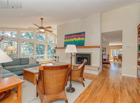 Gorgeous, Updated One Level Living! Large Wall Of Windows With Pikes Peak Views From The Living Room To Family Room! Gas Fireplace In Living Room, Wood Burning In Family Room! Kitchen Has Quartz Counters, Recessed Lighting, Large Center Island w/Counter Bar & Extra Storage! Induction Downdraft Rangetop, Under & Over light Cabinets! Master Bedroom Enjoys 5-Piece Master Bath w/Jetted Tub! Yard Is Amazing! Covered Patio In Back, Patio And Sitting Area Have Pikes Peak Views! Shed & Garden Area! New Class 4 Roof & Gutters. This Home Is One Level Living Is 3,120 Fin. Sq. Ft. On A 1.06 Square Foot Lot! Home Has Beautiful Hardwood Floors Throughout! Spacious Entry Welcomes You Into Home! Formal Living Room Has Vaulted Ceiling w/Fan And Modern Gas Fireplace! The Family Room Enjoys A Wood Burning Fireplace And Patio Doors! Living And Family Rooms Have Great Pikes Peak Views! Kitchen Is Full Of Upgrades! Double Convection Ovens, An Induction Downdraft Rangetop, Beautiful Quartz Counters, Pendant Lights Over Large Center Island, Lighting In Cabinets Near Ceiling And Under Cabinets! All Stainless Kitchen Appliances Stay! Master Bedroom Enjoys A Ceiling Fan And Adjoining 5-Piece Master Bath With Tiled Shower And Relax In The Jetted Tub And All Bathrooms Have Very Nice Updated Cabinetry And Have Tiled Showers And Floors! Large Laundry Rm Has Extra Shelving And Cabinets! The 3 Car Garage Has Built-In Shelving And Cabinets. Large Crawl Space And 40 x 12 Portion Has Concrete Floor And Is About 4' High. The Fenced Back Yard Is Beautifully Landscaped With Several Types Of Trees And Plants! Relax By Patio Or 2nd Sitting Area On Side Of Home, Both w/Views Of Pikes Peak Or Under Covered Patio In Back Yard Where There's Several Walking Paths, Shed And Lg. Area For Gardening! A Must See!