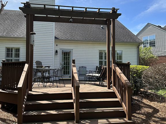Rare Fieldstone Farms Zero Steps Home that backs to Common Area with Great views and Privacy. Fully Fenced Yard with Spacious Deck & Arbor. Bright and Open Floor Plan with Vaulted Great Room and Eat-in Kitchen. Great Flow for Entertaining and Built in Buffet for Storage and Serving. Spacious Bonus Room over Garage with Storage. Plantation Shutters Throughout. Zero Entry Updated Shower in Primary Bath. New Garage Doors and New HVAC. Community Amenities Include Clubhouse, Pool, Tennis Court, Play Ground, Walking Trails and Sidewalks.