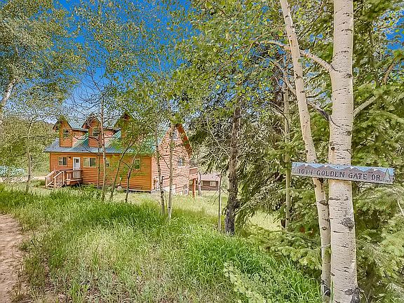 This beautiful 5 bedroom, 4 bathroom home in Golden Gate Park Estates offers serene mountain views with aspen trees scattering the property. A scenic 25-minute drive from downtown Golden and 15 minutes to Blackhawk. It features an alluring large balcony off the back of the home, as well as a walkout basement with a patio, the perfect place to watch the hummingbirds, moose, deer, and wild turkeys. Wood accents throughout the spacious home give a warm and welcoming feel as soon as you walk in. An open concept kitchen with stainless steel appliances and easy access to the balcony for a stunning outdoor dining experience. This home is conveniently laid out with a main floor master bedroom and bathrooms on every floor. Gilpin County provides ease of life in rural living with their public school bus pick-ups.