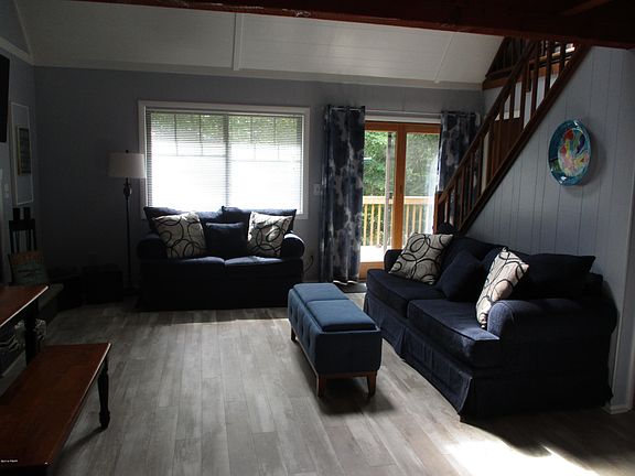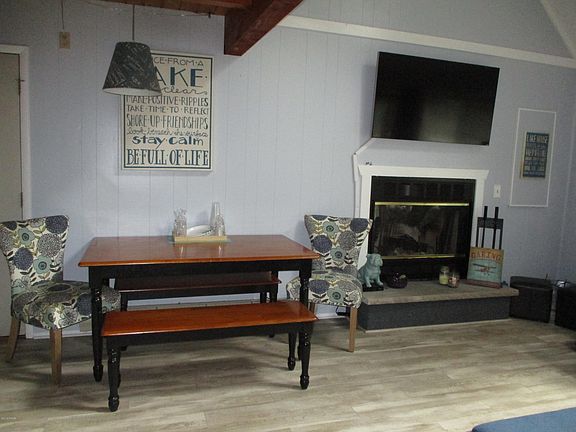Absolutely Captivating, Newly updated Chalet with Huge Master En Suite with jetted tub and separate shower, LR fireplace, Open Floor Plan, Porch Enclosed with Windows! Newer Deck & ROOF in an amenity filled community with beaches, indoor pool, outdoor pools, playgrounds, club houses, Tennis, Water & Sewer included in Low fees! Low Taxes! Activities year round & Access to Lake Wallenpaupack.