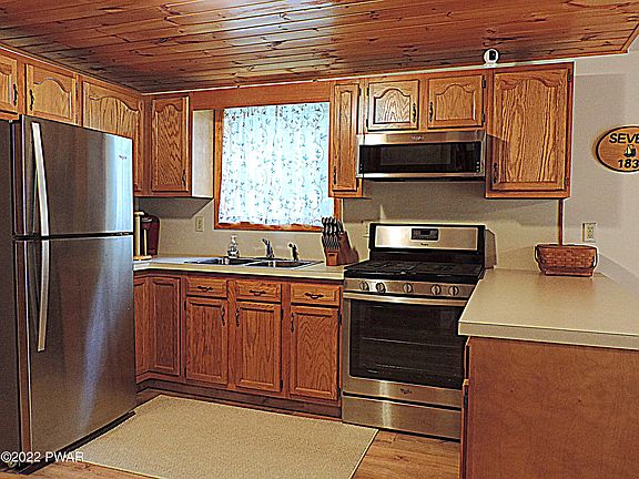 Well maintained and cared for 2 Bedroom, 2 Bath Chalet. Open Loft for extra sleeping area, unfinished basement with laundry and an attached 1 car garage. Property backs up to over 5 acres of Green Space Area for added privacy. Quiet cul-de-sac location within a 2 minute walk to Beaver Lake Lodge and Pool. Located in the full amenity community of Wallenpaupack Lake Estates with private community access to Lake Wallenpaupack., Beds Description: 1 BED 2nd, Beds Description: 1Bed1st, Beds Description: 1 BED 2nd, Baths: 1 Bath Level 1, Baths: 1 Bath Level 2, Eating Area: Dining Area, Eating Area: Modern KT, Sewer: WS Comm Central