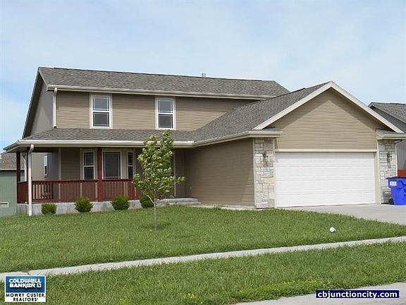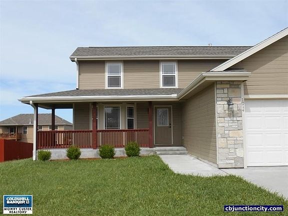 This property offered for sale by Coldwell Banker Mowry Custer, Realtors. For more information contact Listing Agent: Michelle Custer at 785-762-4663. Spacious 3 bed, 2.5 bath contemporary home will be a place your family loves to call home! Main floor has a large eat in kitchen with great amount of cabinet storage and work space. Also has countertop seating and separate dining room area. Vaulted ceilings in the living room complete with gas fireplace. Large master suite with bath and walk in closet also on main floor. Upstairs are two large bedrooms and another full bath. Unfinished basement has great potential and could easily be finished. Home is located in the Spring Valley Subdivision so kids can walk to school. Easy commute to any Fort Riley gate. Call Michelle at 785-226-0437 to look today!
