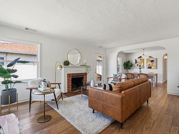Welcome to 1014 High Street, a charming single-level home in Alameda’s East End. Built in 1950, this 3-bed, 2-bath home offers 1,262 sq ft of light-filled living space on a 4,366 sq ft lot. Refinished wood floors and a vintage-style chime nod to its mid-century charm. The living room features a red-brick fireplace and a bright, airy feel, while the dining area is framed by an arched opening and a modern 3-light pendant. The renovated kitchen showcases white shaker cabinets, quartz counters, gold hardware, taupe tile backsplash, newer stainless appliances and a cozy breakfast nook. All three bedrooms are spacious and bright. The primary suite includes an updated ensuite bath with a frameless glass shower. The second bath features a modern vanity, brushed brass fixtures and shower over tub. The rear bedroom opens to a large covered deck overlooking a lush, private backyard with mature landscaping. A detached studio adds flexible space for yoga, art, or storage. Upgrades include central heating, tankless water heater, fresh paint, and 200-amp electrical panel. Located across from Otis Elementary, scenic bay side trails, Lincoln Middle School. Close to Encinal Market, Trader Joe's, golf, restaurants and more! Open house Sat & Sun 2pm-4pm.