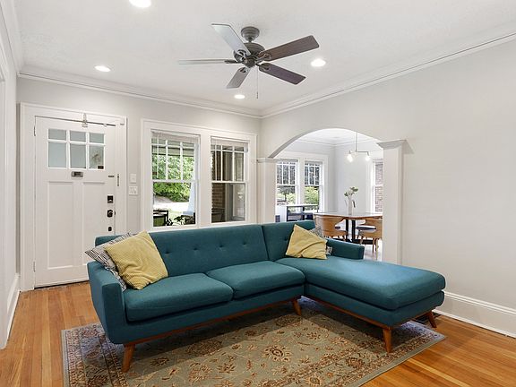 The charm has not been renovated out of this historic home. A welcoming front porch invites you in to a separate living, dining, and kitchen space, all complete with a brick fireplace and built-in shelving. The home also has original hardwood floors, crown molding, and plaster ceilings throughout. There's also plenty of room for expansion with a full, stand-up, daylight basement that spans the entire footprint of the home. Tucked away on one of the best streets in Sylvan Hills and convenient to MARTA, downtown, and the new Lee + White complex on the West End Beltline. New roof and HVAC. Electrical has been updated and new paint inside and out!