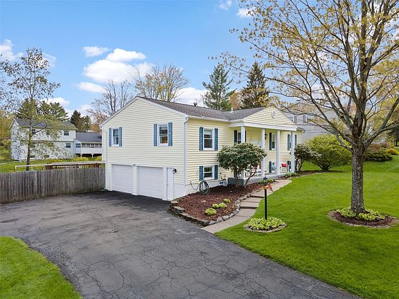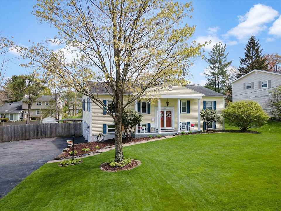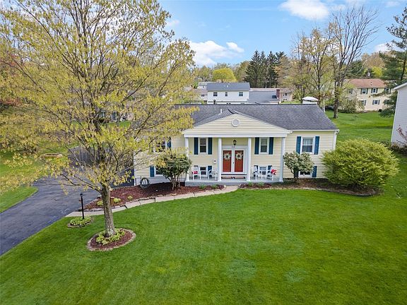 If you are looking for a home with open airy rooms, this is it. This 4 bedroom 2-1/2 bath home has all the entertaining space you need. The updated kitchen with center island is open to the dining and living rooms. The upper family room is loaded with windows and has a lovely gas fireplace with built-ins. Hardwood floors on the upper level lead you to two secondary bedrooms and the primary bedroom with on-suite bath. The lower level has an additional bedroom, 1/2 bath, large laundry room, and a 2nd family room with fireplace and sliders that lead to a large covered patio. Spend your summer afternoons sitting on your covered patio open to the large backyard.