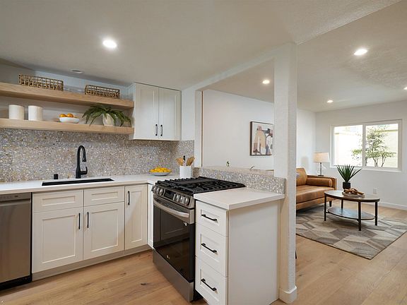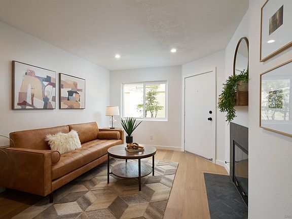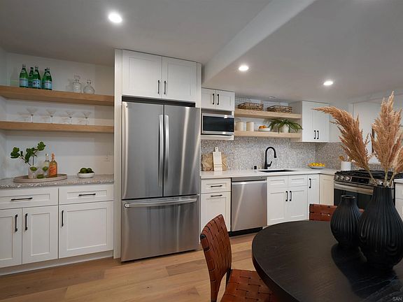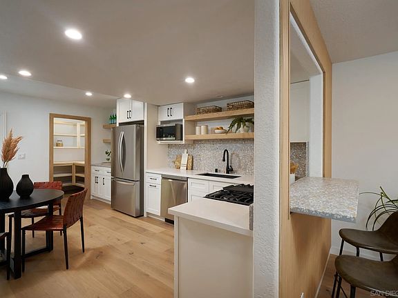 This 2 bed/2 bath home was just remodeled throughout using quality products. The home is located in Carlsbad Village and is one mile to the beach and walking distance to shops, parks and restaurants. The living area has French White Oak flooring, the oversized kitchen has custom concrete and quartz countertops, a newly added pantry with white oak trim, custom solid white oak floating shelves and smart stainless steel appliances. Off the kitchen is a generous sized patio with artificial turf. The ensuite bedroom includes a tub/shower combo, smart mirror and glass shower door. The hall bath has a shower with wood-like tile, glass shower door and smart mirror. There are new Milgard windows, washer and dryer and a newer air conditioner in 2022.