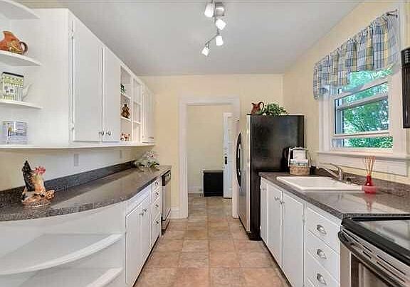 - Kitchen Cabinets/Counters: Formica Counter, Painted Cabinets