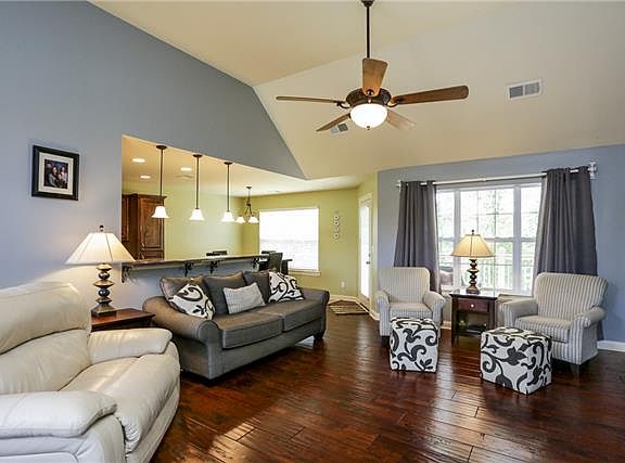 Large lot w/creek and privacy! Large Deck w/portion covered! Beautiful Hardwoods/soaring ceilings/fireplace welcome you to the open living space! Windows offer natural lighting across rear view to wooded area! Large Bonus room over 2 car garage + carport!