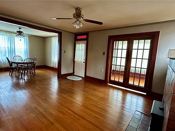 Charming 3 Bedroom 2 Bath Ranch Home in the Heart of Harrison Township! Upon entry you are introduced to beautifully re-finished hardwood flooring covering a Spacious & Bright Living Room with decorative Brick Fireplace and twin windows on each side, charming French Doors lead to the Den/SunRoom flanked with walls of windows allowing a room full of Sunlight & A Large Formal Dining Room with a Built In Country Cupboard! The Eat In equipped kitchen has plenty of space and has a little bonus mudroom leading to side door and lower level! Also on the main level you will find the Primary Bedroom along with 2 Additional Bedrooms and Full Hall Bath w/a Beautiful Built in wood Hall Linen closet with drawers and doors! The Lower Level houses a huge Family Room with Pool Table and Game Room space, 2nd Full Bath, Laundry space & 2 storage rooms! The 1 car detached garage has a bonus 2nd floor workshop! A Fenced level yard & Covered Front Porch complete this lovely home! Newer A/C,HVAC,HW + More!