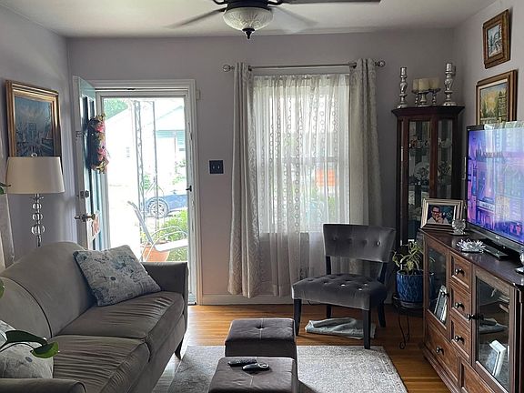 Wonderful curb appeal leads to an inviting front porch. Open the front door and  step into a well lit cozy livingroom with hardwood floors. Walk thru one of the two beautiful archways into the eat in kitchen with a chandelier, gas stove and a view of the backyard.  Another archway leads to a hallway  with two bedrooms and a fully remodled bath.  Bathroom includes a tiled walk in shower, gorgeous vanity and tiled floor. Basement has washer/dryer hook up, tall ceilings and lots of storage.  The Backyard offers a 10x12 concrete patio great for entertaining.  There is parking in the back of the house as well as street parking. Home is being sold as is.