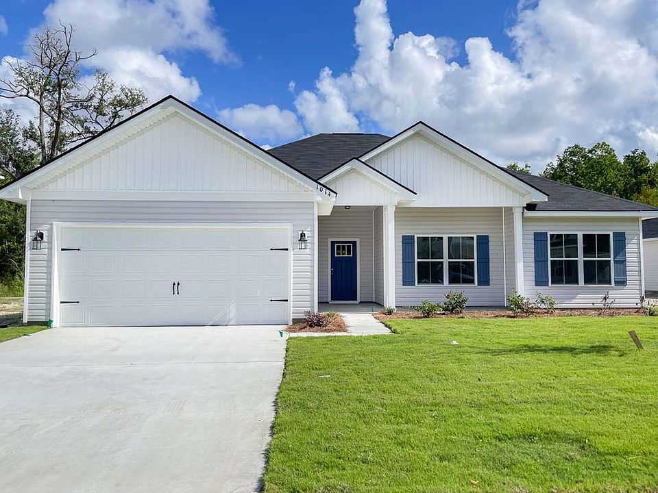 Brandon 2 plan in Cherokee Station of Hinesville! A centrally located neighborhood within walking distance of Cherokee Rose Country Club & neighborhood market! Very close to local schools, shopping & dining! The Brandon 2 plan features an open-concept living space upon entry to the home with 4 bedrooms, 2 baths! Step out onto a back porch & patio from the family room as well. The kitchen & dining area are open to the family room- and also have access to the 2-car garage. Also featured in the kitchen are stainless appliances & granite counters! A walk-in pantry & laundry room sit just off the kitchen as well. From the family room travel down a hallway to 3 bedrooms & a hall bath. The master suite lies at the end of the hallway & features a vaulted ceiling & private bath with soaking tub, dual vanity, separate shower & walk-in closet.