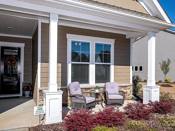 Welcome to serene living for those 55+! Step inside to a spacious layout with 3 bedrooms, 3 baths, flex room, bonus room, & great room w/gas fireplace, lots of windows, & natural light. The main floor has wood floors, 10'+ ceilings, 8' doors, a gourmet kitchen with granite, enormous island, gas cooking, SS appliances, wood glazed cabinetry, & pantry. The primary suite on the main is a tranquil sanctuary where you can pamper yourself with an ensuite bath, spacious closet/dressing room, enormous tiled shower w/seat, & more. Other highlights include the laundry room with space for a refrigerator, an expanded garage with extra storage space, and tankless water heater. Enjoy your morning coffee on the covered front porch and view a gorgeous sunset every eve on the rear lanai. Live like you are on vacation with incredible amenities opening this month: tennis, pickleball, & bocce courts; resort-style pool; clubhouse with fitness center, yoga, & art/ceramic studio; dog park; trails; and more.