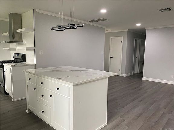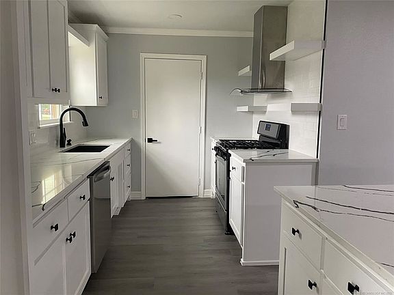 Modern House in the heart of Broken Arrow, only a few minutes away from Hwy 51, the Rose District, restaurants, shops, right behind Rhema Church & so much more. House features an open kitchen concept with plenty of storage, windows, appliances, lights, fans. The flooring includes wood, tile and carpet as well as beautifully renovated bathrooms, new paint inside and out and landscaping. See it before it's gone.