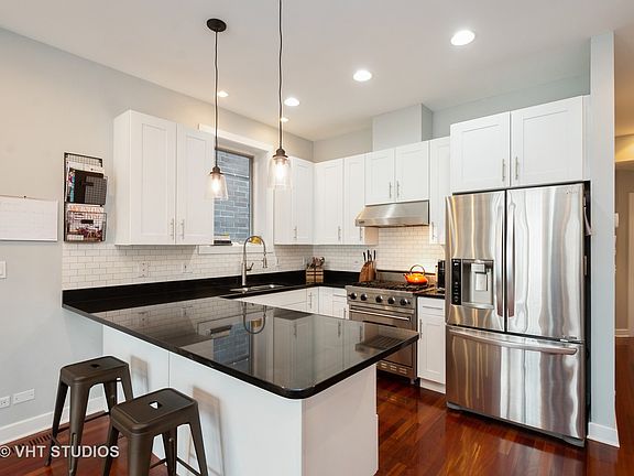 Tastefully updated 2 bed 2 bath condo in an all brick building on a quiet one-way street in Wicker Park/Ukrainian Village neighborhood. Natural light in abundance throughout the unit. Functional and spacious layout with features including: large living/dining room, open updated kitchen with Viking range, ensuite master bathroom with double vanity and separate shower and jacuzzi tub, spacious 2nd bedroom, and in unit washer/dryer. Large private deck, perfect for entertaining. Price includes storage and garage space. Ideal location between Division and Chicago Ave which gives full access to night life, best restaurants, shops, public transit, and easy access to highways.
