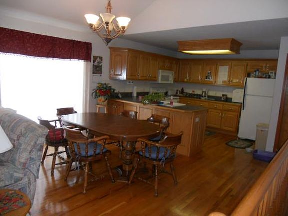 Fantastic 3 BR, 2 BA Open floor plan with unfinished walk-up bsmt. Master suite w/ walkin closet and jet tub. 2nd BR same sz as master. Gleaming hdwd flrs in great rm w/ soaring ceiling & woodburning insert in fireplace. Open kit/dining rm great for family gatherings. Full bsmt w/ daylite windows, water softner & stubbed for 3rd bath for future expansion. Deck overlooking peaceful backyard and nice front porch for outdoor relaxing. Great location close to grade school and K-10 for commuters. A Must See!!