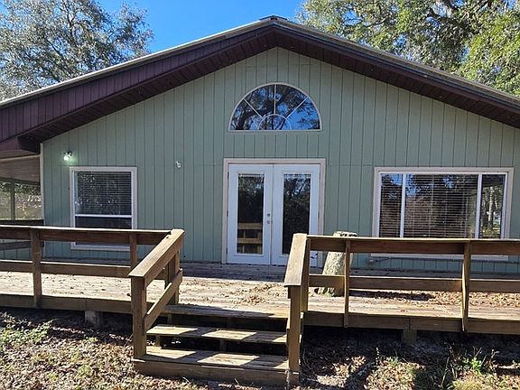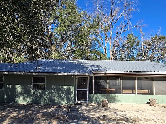 Florida waterfront home on the beautiful Suwannee River. Located in Old Town, Florida this home is nestled under large oaks and cypress trees along side the Suwannee river. Sitting high and dry come and enjoy the Nature Coast from your deck that overlooks the river or use your private floating dock to boat to local restaurant's and nearby fresh water springs that are minutes away. The home is a two bedroom and three full bath with each room acting as a master bedroom. The third bathroom is positioned for a guest bath. The house is an open concept so you can view the river from the kitchen, living room and dinning area. The living room/back foyer area has vaulted ceilings with windows positioned to have a wide angle view. An uncovered back porch sits just outside of French doors where half is in the sun for tanning and half under large oaks for relaxing in the cool river breeze. There is a screened porch on the side for gatherings when the unplanned weather elements prevent being outdoors. A work shop is attached to the house where it provides extra space to be combined with your laundry room. A stairwell leads to a large attic that is big enough to store multiple personal belongings. The floors are a smooth epoxy finish with additional gloss added for that always clean look. There are Citrus trees located on the property of .757 acres with 57 feet of river frontage. It has City Water with a well for irrigation and a septic system. The metal roof on this home appears to have many years of life left on it. The home is approximately two miles from grocery stores, restaurants, fuel and a medical facility in a small town for that county living lifestyle. Waterfront property in Florida continues to go up in value making this a perfect investment, vacation of permanent home.