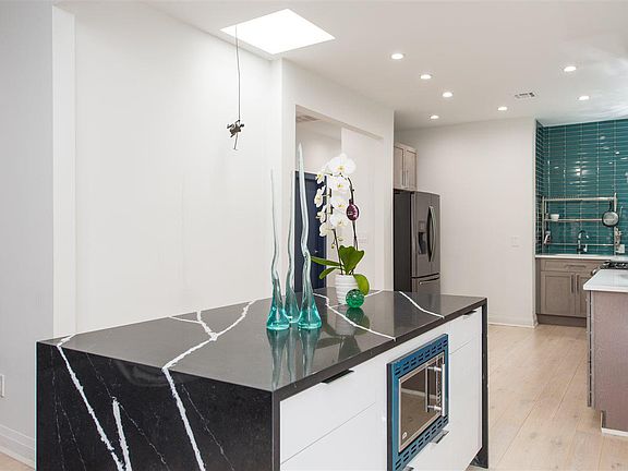 NO FEE Welcome to this exquisitely renovated 3 bed 2 bath with balcony and two car parking overlooking the NYC skyline. Plenty of space to enjoy the company of family and friends with 1800 sq feet covering the entire floor on the building. The oversize living and dining areas are open to the kitchen, well arranged for entertaining. You will love the light coming in from windows on all sides, enhanced by tall ceilings. The front of the home has a flex space large enough to use as a second living area or as combo office space. The living room is complete with original decorative fireplace. Chefs kitchen features light grey European custom cabinets, SS appliances, Caesarstone counters and a beautiful 7 foot waterfall island with built in microwave. Other features include recessed lighting in all rooms, Brazilian wide plank hardwoods throughout, central AC and heat, W/D in unit and plenty of closet space. 2 Car parking included with rent in garages around the back of the property. Ideally located for easy 15 min. commute to NYC, steps from Hoboken with Trader Joe's, West Elm, Dining and 1 block from the marvelous free community pool. Small pets allowed.