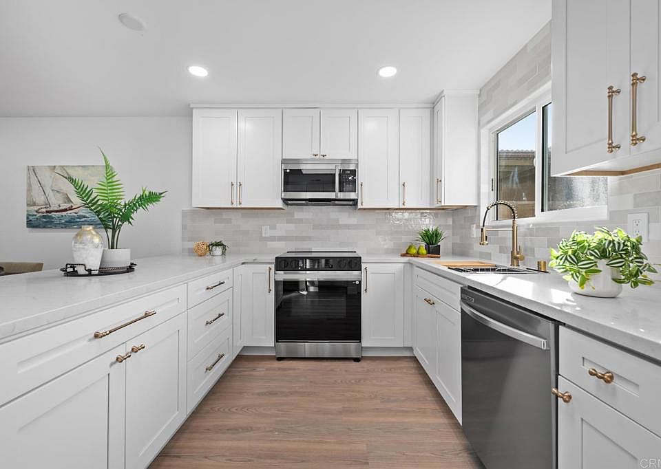 Beautifully renovated single-story condo located in the desirable 55+ Oceana mission II community in Oceanside. This move-in-ready home features 2 bedrooms and 2 fully remodeled bathrooms with brand-new finishes throughout, creating a clean and modern feel. The home includes a brand-new energy-efficient HVAC system, a fully updated kitchen with new cabinetry, countertops, backsplash, and stainless steel appliances, as well as tastefully remodeled bathrooms with contemporary vanities and fixtures. Enjoy the warmth and charm of the fireplace along with a private patio ideal for relaxing and enjoying the coastal climate. The garage provides convenient parking and additional storage. Residents of Oceana enjoy access to community amenities including a pool, clubhouse, and beautifully maintained grounds. Ideally located just minutes from shopping, dining, Oceanside Harbor, local beaches, and easy freeway access, this home offers low-maintenance, resort-style living in one of Oceanside’s most sought-after communities.