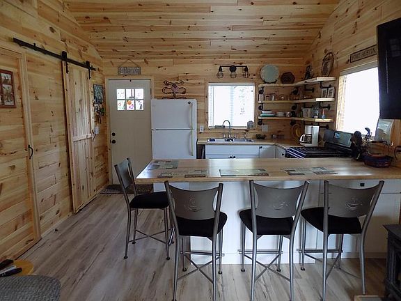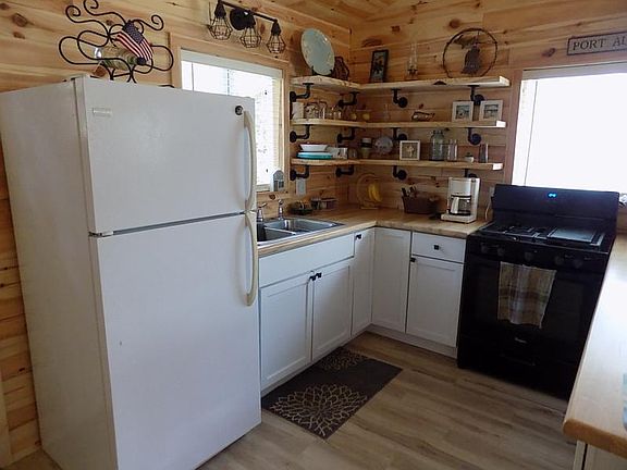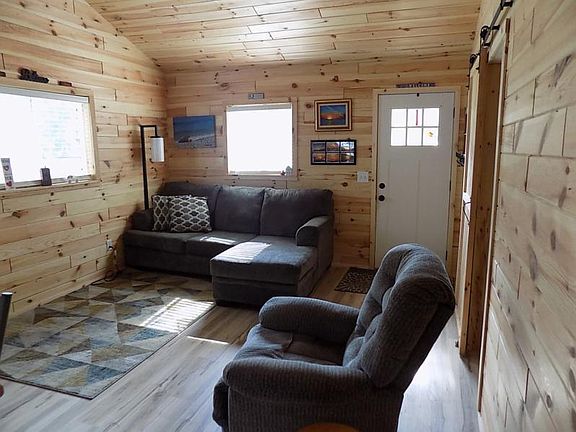 Nice lake access home on the lakeside of the road with no major road to cross. This home has been completely updated in 2020 and has one bedroom and a loft. Updates in 2020 include tongue and groove white pine walls and ceiling, updated kitchen with ash countertop, vinyl plank laminate flooring and updated bathroom with shower. The roof, siding and windows were updated in 2016. The kitchen has a snack bar and is open to the living room with vaulted ceiling, ceiling fan and gas fireplace. There are three beach easements along Bayside Trail, the closest one is just past two houses to the east with a beautiful sandy beach. You will find barn doors on the bathroom, bedroom and closet. Nice spacious loft with railing, which would be a great space for the kids to sleep, with a hidden door leading to a ladder to access the loft. Included is a stackable washer and dryer, stove, refrigerator, window air conditioner and 8' x 8' storage shed and outdoor shower, the furniture is negotiable. This is a great move in ready cottage just steps away from a beautiful sandy beach. Call to schedule a showing today!