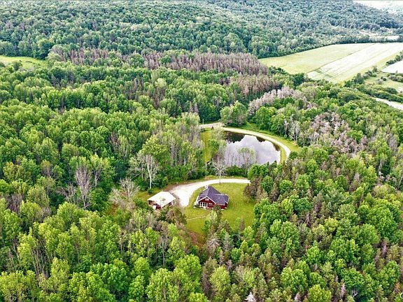 Enter the gated gravel drive and escape to this private retreat located in southern Steuben County. The home was built in 1991 and overlooks the spring-fed pond that has a depth of 17 feet and is stocked with Bass, Bluegill, and Carp. Well-maintained home sits on a full block basement and has had some major updates including a newer roof and siding, and a recently drilled well. Store your equipment and toys in the 30 x 30 pole barn which is situated next to the home and features concrete floors and two overhead doors. Step into the home through the large, screened-in back porch which is a great finished space for entertaining. Walk into the kitchen/dining combination featuring an island, oak cabinets, double oven, and cooktop. Highlighted by the over-sized stone fireplace and tall tongue and groove ceilings, the living room is another great space for entertaining. Large bedroom & full bathroom on main floor. Upstairs is a second bedroom and a loft area leading outside to a second story porch. Enjoy your morning coffee while overlooking the pond from the patio on the front of the home. In the hills, just north of the Pennsylvania line, enjoy the tranquility of this private setting!