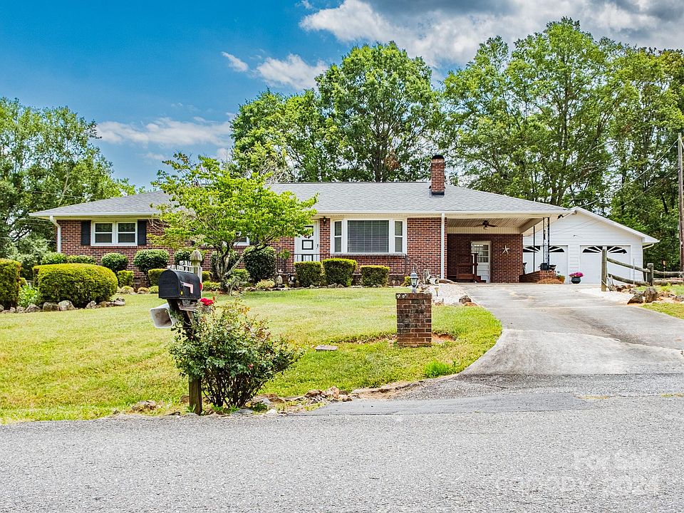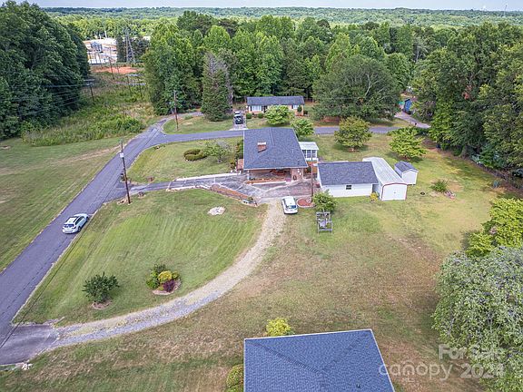 Classic mid-century ranch on a large corner lot just waiting for you to add your personal touches! Large detached 2 car garage plus oversize detached carport canopy (may fit RV) plus storage shed. Kitchen has granite countertops, tile backsplash, updated lighting and original wood paneling in dining area. Living room has masonry fireplace with gas logs, built-ins and bay window. Primary bedroom features a cedar-lined closet plus ensuite bath with zero entry tiled shower with bench and safety bars. Both secondary bedrooms have dual closets. Beautiful original hardwood floors. New HVAC 2022 (Gas pack), roof 2023, Microwave late 2023. Sunroom/enclosed porch has window A/C but no heat. Refrigerators, TV mounted in living room, all yard furnishings & window valences to convey. Great location just north of downtown Lowell, close to I-85 access and recreational facilities. Priced below recent appraisal. Sellers have no knowledge of permits for sunroom, garage, renovations, etc.