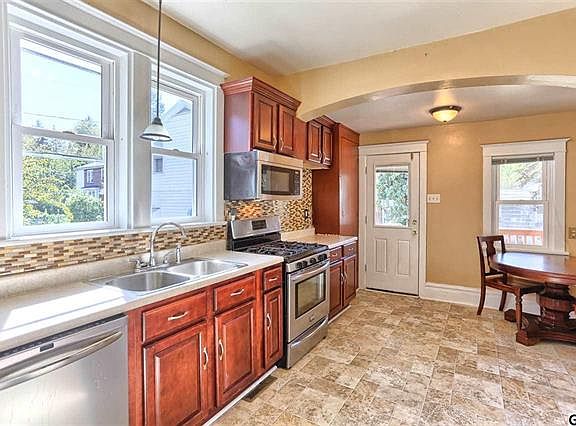 Numerous upgrades abound in this lovely all Brick Detached 4 Bedroom, 2 full bath home. The Oil and radiators for heat was converted to Central air and natural gas in 2013. Hard wood floors throughout the first level, new deck, water heater and fence installed 2 years ago. Spacious kitchen with stainless steel appliances and more. 1 year home warranty included.