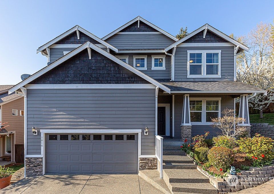 Gracious living spaces, gleaming floors, architectural detailing, classy frplc, rich finishes, contemporary styling and fashionable fixtures complement the easy flow two level design. Well-equipped kitchen features polished countertops, plentiful cbntry, SS applcs, eating bar. Double door primary en-suite with indulgent bath, sizable bdrms, full guest bath, loft/bonus rm, handy laundry rm on upper level. Living space extends to HUGE covered elevated deck, expansive pavered patio; fully fenced yard and room for RV. Two car garage has plenty of storage. Scenic neighborhood enjoys mountain and city views. Commuter dream access to I-405, I-5, Hwy 167, airport; within minutes of major retail, shopping, dining, entertainment and recreation.
