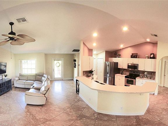 HUGE PRICE REDUCTION. You have to see this lovely home. No other like it! Built in a corner lot with plenty of room for a large pool in one of the most desirable neighborhoods in the heart of Cape Coral. Just minutes away from great schools, restaurants, shopping centers, public library and more. With a split floor plan and a great room, privacy will not be an issue. Beautiful kitchen with a peninsula bar, stainless steel appliances and recessed lights, open to the dining room and the living room, so you can be a part of the family while cooking dinner. Master bedroom with a spacious bathroom and two walk-in closets. Inside home laundry room. Sliding doors & windows. Tile in living area and wood like floors in the rooms. You will love the covered screened lanai and fenced in yard, great for BBQs, parties, gardening and/or planting fruit trees; or just soaking up Florida's golden sun. Its proximity to Pine Island Road provides easy access to I75, Ft. Myers Beach, Sanibel Island, and the SW FL International Airport, which makes this the most desirable location in Cape Coral. Newly paited interior, new water pressure tanks and gutters in place. This property is in mint condition!