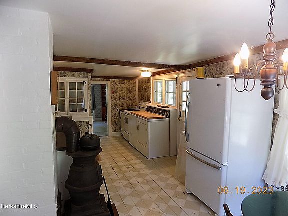 If you are looking for the charm of an 1800 two bedroom house this could be what you are looking for. There is a good sized period kitchen with two Dutch doors, one leading to the screened porch and the other to the back yard. The living room has wide board flooring a beamed ceiling and a wood burning fireplace. There are two other rooms on the first floor which can be used for either a sitting room or dining room. The two bedrooms and full bath with claw foot tub are on the second floor. Close to the villages of Sheffield MA. and Salisbury CT. House has been freshly painted. Front porch flooring and four new posts were just replaced also.