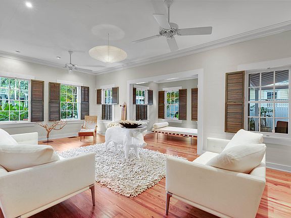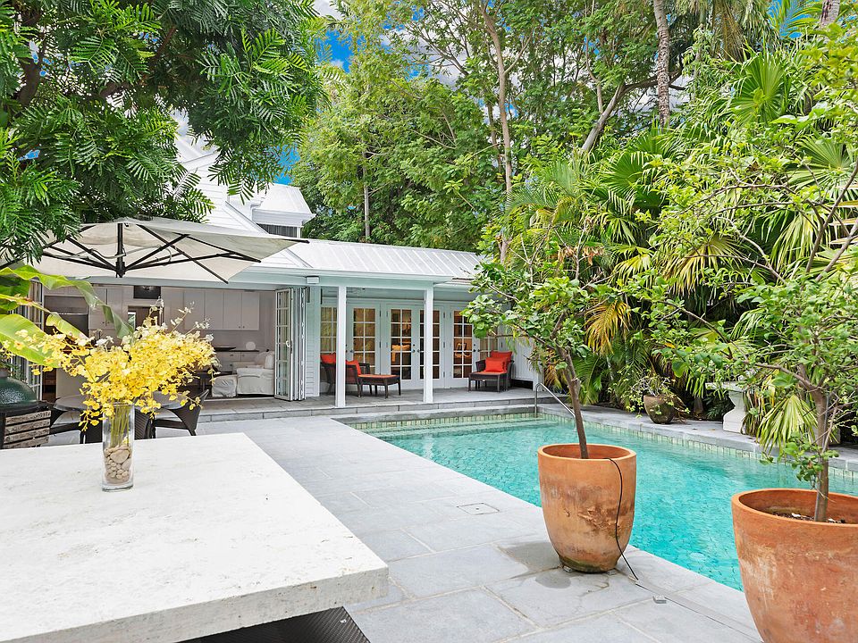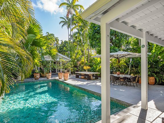 Nestled in the storied heart of Old Town Key West, this grand estate is a masterpiece of luxury & history. Spanning a majestic 8,397 sq. ft. lot, the property at 1014 Southard St. Invites you into a world where classic charm meets modern elegance. With 4 bedrooms and 3.5 Baths and over 3,000 sq. ft. of interior space across two separate structures, enjoy an unparalleled gem in one of Key West's most coveted neighborhoods. Constructed in 1899 by renowned William Cash, this estate radiates a colonial grandeur, enriched with a cranberry cut -glass transom sophisticated dark green shutters & classic french doors. The current owners have meticulously restored the property using only the finest selection of materials, from river reclaimed old growth hardwood floors in living room and hallways, to stunning Blue Castle Limestone in master suite and kitchen and continued through the magnificent garden and pool to the separate guest quarters. Smarthome features have been introduced, including Zigbee Lights integrated with Home assistant, sensor mix's, Ecobee Thermostats, 6 Node Eero Mesh Network, Abode Alarm Systems & Nest protect Sensors. The master suite located on the ground level is a peaceful sanctuary with private library & den, exceptional ensuite, three sets of French doors and opens out to the magnificent saltwater pool and tropical landscaped garden. Two additional bedrooms on second floor in main house share a bath and private veranda. Separate cottage provides exceptional guest quarters and can be accessed from Roberts Lane for additional convenience. Stunning post & beam cathedral ceilings, Limestone floor, built-in bar and kitchenette and spacious living room offers excellent space for entertaining with deck and pool access. Additional features include, One off-street parking spot, equipped with Tesla charging station & new 2023 generator powered by dual propane tanks. Welcome to Key West Living at it's finest.