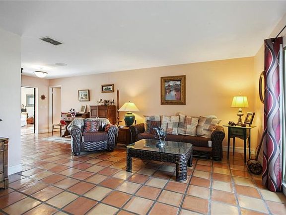 Enjoy life on the water sitting next to your enclosed pool or while barbecuing inside while sitting at the bar.This gorgeous home has 2 sets of glass pocket doors that completely open up the back of the house giving you total access to the pool, the dock, the boat, and the canal. Walk into the house on to the Satillo tileflooring that is throughout most of the home. The dining area has a wood burning/electric fireplace providing you with ambience. The kitchen was upgraded with granite counters along with the appliances. The screened pool is of pebble tec quality and is surrounded by pavers. The covered dock is good size withstanding a 10,000lb boat lift, a fish station, and the seawall is of good quality built in 2009. The double garage is over sized for the extra needed space and the roof is tile put on in 2007. Living on the water is truly a luxury, and this home is a gem.
