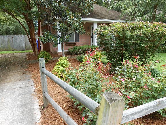 This is a 3 bed 2 bath house in a quaint little brick neighborhood located right off of Camp Rd. on Riverland (James Island). It is a 10 minute drive to Folly Beach and 10 minute drive to downtown. All of the kitchen appliances are brand new. There is a washer and dryer in the home and off street parking in the driveway or on street parking that does not require permits. There is a fenced in yard with a fire pit and shed for extra storage. Animals must be potty trained. 1 year lease required. May view upon appointment. Background check, credit check, and security deposit required at lease signing.