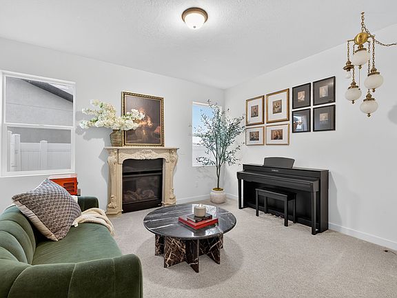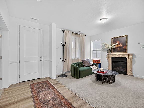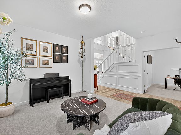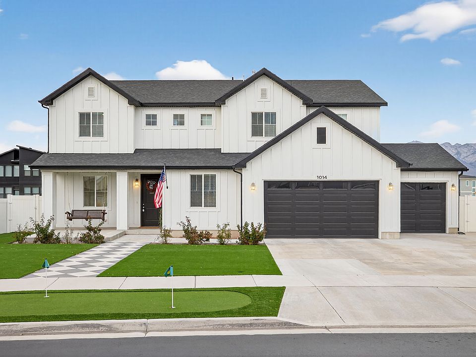 Stunning Former Model Home conveniently located near schools, parks, shopping, restaurants, and FrontRunner access. Over $100K in recent upgrades and exceptional attention to detail throughout. Step inside into the bright great room with soaring 18-foot ceilings, oversized windows with transoms, and exquisite finished carpentry including crown molding, wainscoting, shadowboxing, and chair-rail trim. The brand-new custom fireplace mantel anchors the main living area with timeless style. Upgraded interior flooring and designer finishes enhance the home's refined aesthetic. The gourmet kitchen features quartz countertops, double ovens, a gas cooktop, and a spacious pantry with added electrical for a butler's pantry setup. A private office with a closet on the main floor offers flexibility for work or guests, located next to a full bath. Upstairs, the primary suite includes vaulted ceilings, dual sinks, a custom walk-in closet with organizers, and a dedicated makeup space. All bedrooms are generously sized, and every closet includes custom built-ins for excellent storage. Dual A/C provides year-round comfort, complemented by whole-home Wi-Fi and hard-wired internet ports in every major room for optimal connectivity. The exterior is designed for low-maintenance living, with astroturf in the front and back yards, a park-strip putting green, backyard soccer area, and a two-level concrete patio ideal for gatherings. Raised garden beds and three gated entries offer convenience and versatility. The oversized 3-car garage includes built-in shelving, a new side-mount garage door, and ample parking space. Move-in ready and meticulously upgraded, this home combines luxury, technology, and recreation in a beautiful and functional setting. Square footage figures are provided as a courtesy estimate only and were obtained from County Records. Buyer is advised to obtain an independent measurement.