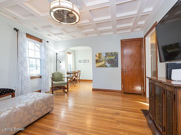Assumable 3.5% FHA interest rate for qualified buyers! Be prepared to be impressed with this absolutely adorable storybook cottage in Louisville's charming Beechmont neighborhood! Beautiful details throughout that include beaming hardwood floors, natural wood trim work, beautiful coffered ceiling, and original built-in cabinetry. Open-style flow through the living room, dining room, and kitchen. A rare feature of this home is the full ensuite primary bedroom with a walk-in closet and large private bathroom with a heated tile floor and custom vanity! Up the unique spiral staircase is the 3rd bedroom featuring its own half bath and built-in storage, a perfect childs room or home office. Everyone can have their own bathroom! Recent updates are new windows, new storm door, new chimney cap, new hot water heater, refinished hardwood floors, a ready to use invisible fence for a dog. The backyard is ready for Fall nights with a sunken fire pit, ready for use. Large 1-car garage with extra workshop space!
