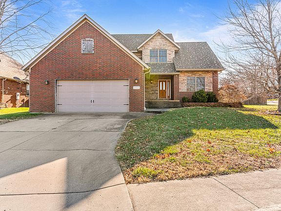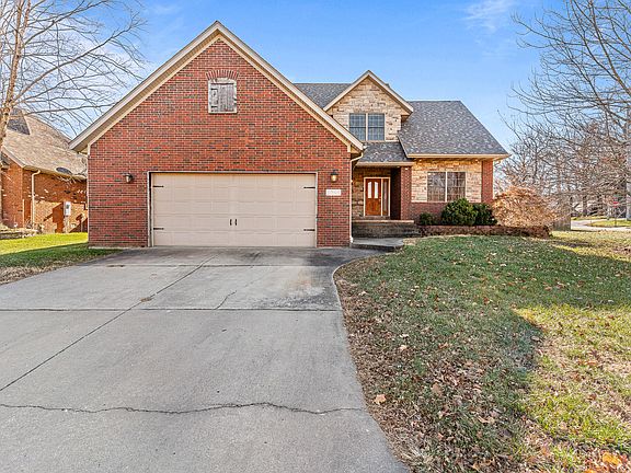Experience the charm and elegance of this stunning home in Ozark, featuring a stone-accented exterior and a maintenance-free design. This spacious 1.5-story home welcomes you with a soaring cathedral ceiling and a cozy stone fireplace in the great room. Enjoy the new hardwood floors and carpet throughout the house, as well as the generous kitchen with custom cabinets, granite countertops, and a breakfast bar. Relax in the main-level master suite, which boasts double oak doors, a jetted tub, and a tiled walk-in shower. The upstairs bathroom also has a double vanity sink for your convenience. Plus, you'll love the new roof that adds value and protection to your home.