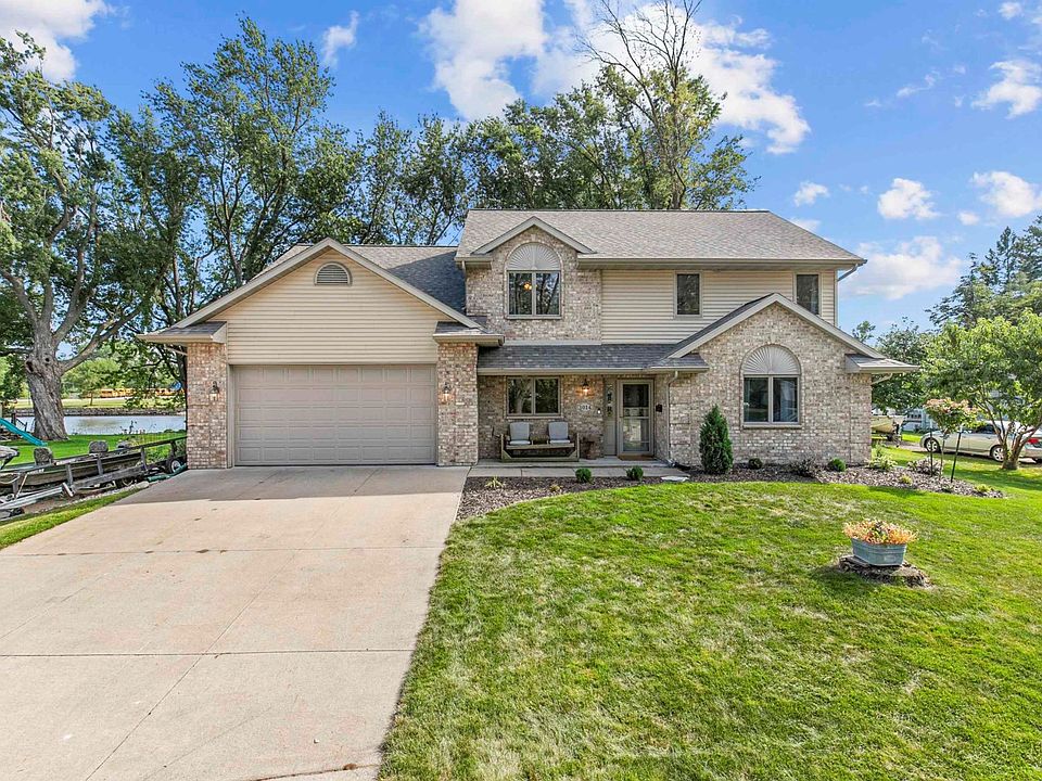 Dreamed of waterfront living? You've found it!! Inside you will find soaring ceilings, open floor plan, gorgeous updated kitchen w/ lg center island w/ hard surface counter tops & pretty backsplash, Living room w/ gas fireplace. Awesome Rec room w/ painted concrete floors w/ lots of space to entertain! Low maintenance trex deck to enjoy & 80ft of water frontage w/ floating dock! 1st floor Primary suite w/ private bathrm & walk in closet (all bedrms have lg walk in closets), convenient 1st floor laundry & half bath complete the main floor. Open staircase takes you to landing area & bonus room (great for storage or 4th bedrm), 2 more bedrooms & 2nd full bathrm. Att. 2.5 garage has access from laundry or rec room & is finished. Wonderful place to call home!