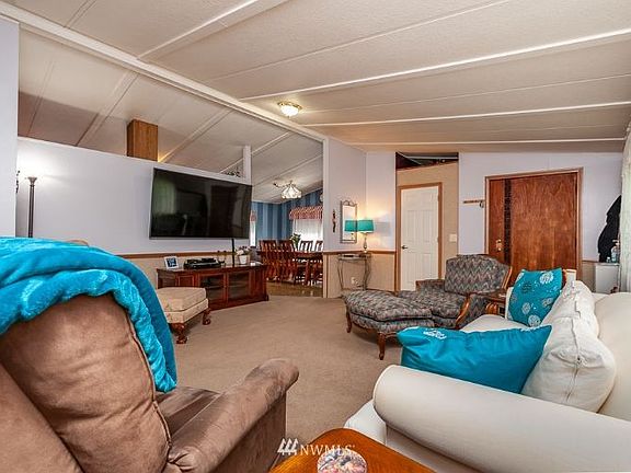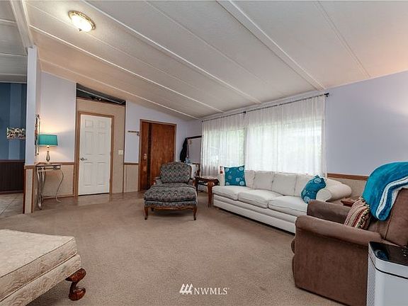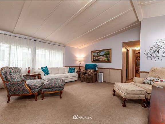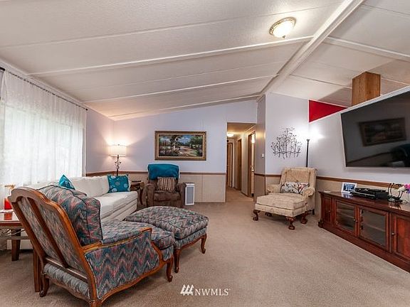 Pride of ownership shows in this 3 bedroom 2 bath manufactured home. Vaulted ceilings make the 1, 365 sq. ft. feel expansive. Main bedroom with built in storage, en suite bath and soaking tub. South facing kitchen makes for lots of natural light. A utility room for laundry and storage, even a refrigerator for grocery overflow that stays with the house. Land is leased and park location is very desirable, close to Bellingham and Ferndale! End unit means neighbors only on one side, mature hedge provides lots of privacy.