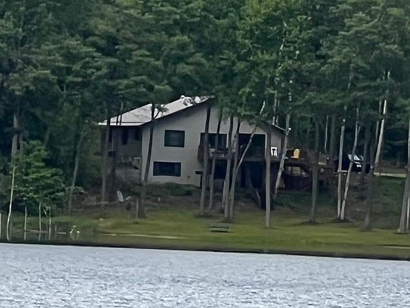 Here is your perfect getaway---nestled in a private setting, on over 5.4 acres (3 lots, all waterfront), with over 260' frontage on beautiful, quiet Round Lake. Built in 2002, and all new flooring & paint in the last few years! Large oak Kitchen and Living Room/ Dining area, all overlooking the lake from the beautiful deck!! Bedrooms are nicely sized also!! Wonderful family room w/ woodburning stove & dining area in walkout level! Large bedroom & laundry in lower level also! Many furnishings may be included, too! You WILL fall in love w/ the GORGEOUS Pole Barn (32' x 50' w/ two sliding doors & 200 AMP service!)-- (side-by-sides in garage are negotiable!!) Sellers just installed Gemini 3 HughesNet---the best! (Spectrum just got to town also!). This home is a rare find on a lake and association that is maintained with pride, including a stocked lake, that is serviced by the Michigan DNR for weed control and year round road maintenance. COME, find your peaceful new hideaway!