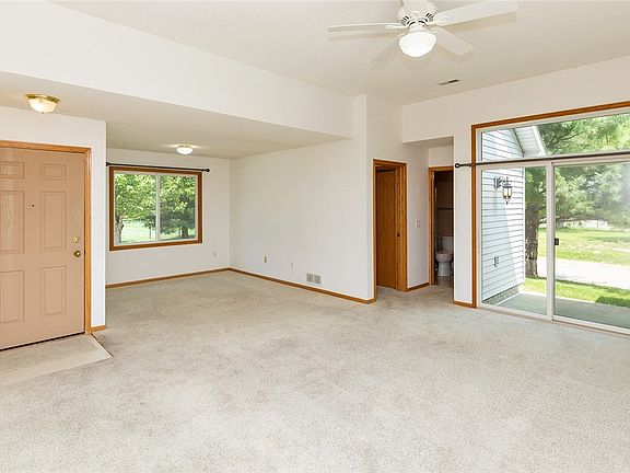 Remarkably well kept, end unit Urbandale ranch townhome that you'll want to see! Entering you're greeted by a large, bright living space with 10' ceilings and transom window above sliding glass door letting in so much natural light. Front flex space is perfect for 2nd sitting area, formal dining room, office, etc. Off of the living room is first bedroom and full bathroom. Kitchen is open to the living room with ample cabinetry, two-tier counter top with breakfast bar seating, all appliances included and HUGE pantry closet. Laundry room and 2 car garage access conveniently off kitchen. Primary bedroom is spacious with 3/4 bathroom ensuite and roomy closet. Updates include:New furnace 2019, new patio door 2018, new AC 2014, new oven 2021, new premium Marvin windows throughout the home and new washing machine 2022. Close to many shops and restaurants of Urbandale and Clive, as well as quick access to anywhere in the metro. Across the street from Urbandale soccer fields, with views of grass and trees. Come see today!