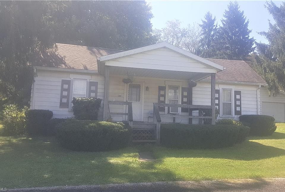 Located on the edge of town, this 1 story home has large, level yard on corner location near the end of dead end street. The covered front porch and back patio are enjoyable rain or shine. The convenience of a 1-story home with 3 nice sized bedrooms, spacious living room and updates that include: roof on home and garage, water heater, plumbing, furnace and insulation. This home also includes a detached 2-car garage with concrete floor and electric. Close to I-77 and I70.
