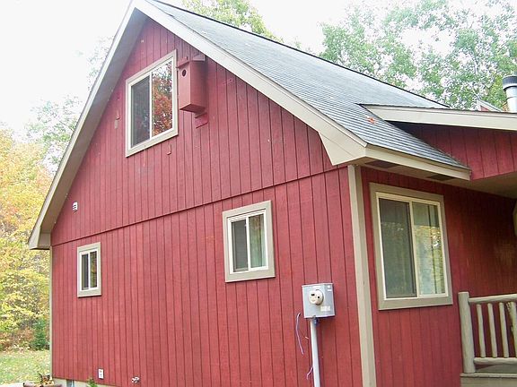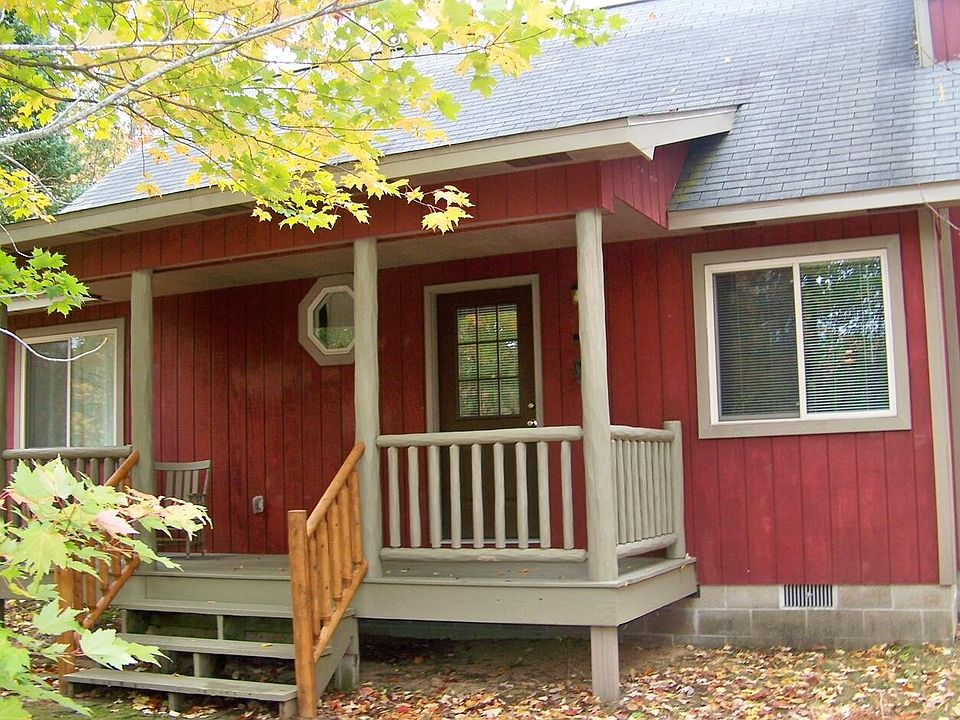 2007 built Chalet with log and beam accents. This two bedroom + loft bedroom, and two bath home shows pride in ownership, and is move in ready to enjoy. There is a snack island in the kitchen and a wall fireplace in the living room to add to that ''Up North'' feel. This home also features a 16x10 screened in back deck that can be converted into a three season room. This is accessed through sliders off the dining room. There is also a covered front porch & 10 x 12 storage shed along with a stone accent fire pit. The home is located on 4 lots for a total of almost 2 acres. The home is nestled in the hardwoods for a very private setting, but convenient to the amenities Lakes of the North has to offer. This property can be either a weekend retreat or permanent home.
